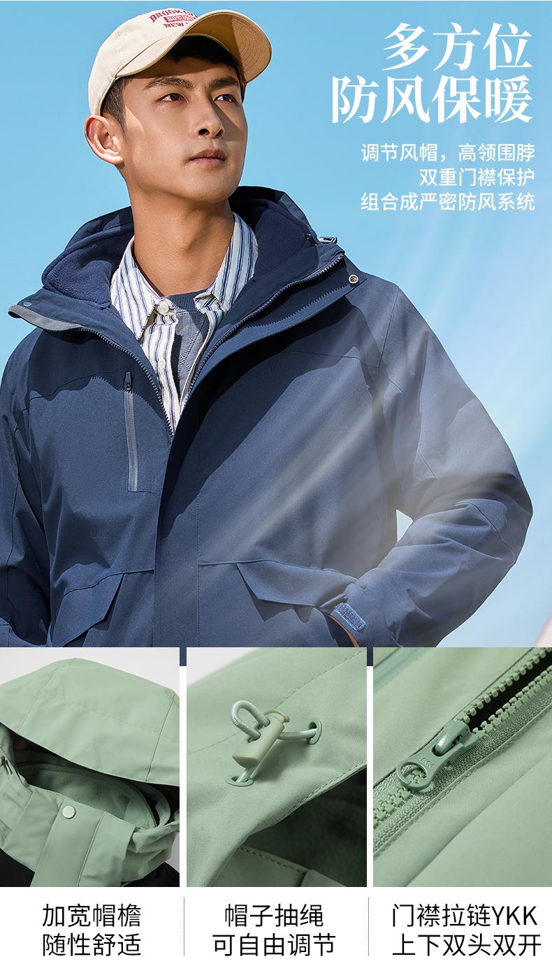 防风外套+摇粒绒内胆,暴雨级别防水面料