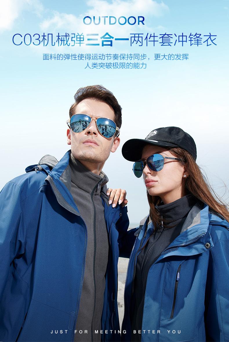 C03机械弹三合一两件套冲锋衣,防寒保暖,有效阻挡寒风侵袭。多种颜色可供选择,满足你的需求。特殊的面料处理,面料遍布纤维孔,透湿透气,长时间户外穿着身体亦不感闷热,时刻保持舒爽体感。先进的锁温技术,有效防止热量散失,提供持久的保暖效果。采用环保面料,穿起来更健康,减少对环境的影响。冬季来这样一件冲锋衣无疑不是一个绝佳的选择。
