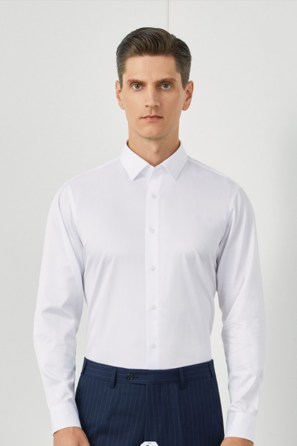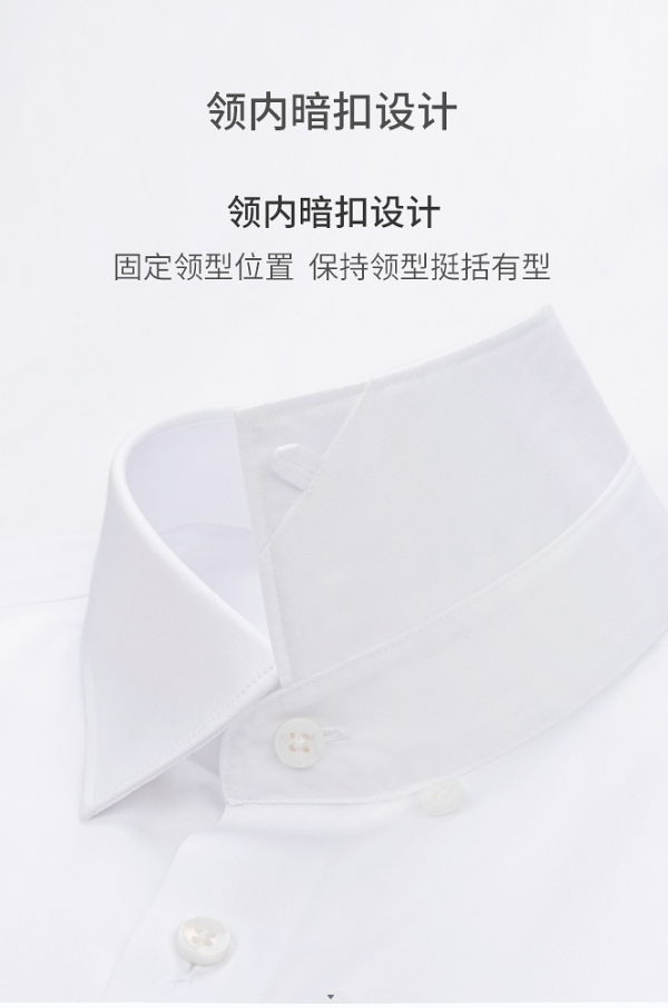 男士衬衣定制,这款衬衣领内是暗扣设计,固定领型位置,让男士更加挺括有型以及更加有精神。 袖口有精细的纽扣,更加显得男士更加精神以及干练!